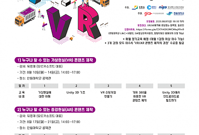 ·강의기간 : ‘2020. 08. 02. ~ ‘2020. 08. 03. ·강의내용 : VR/AR 소개, Unity 3D를 이용한 융합 콘텐츠 제작법